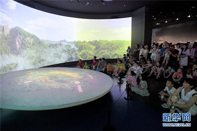 7月24日,家長和孩子在湖南省博物館觀看科普短片。