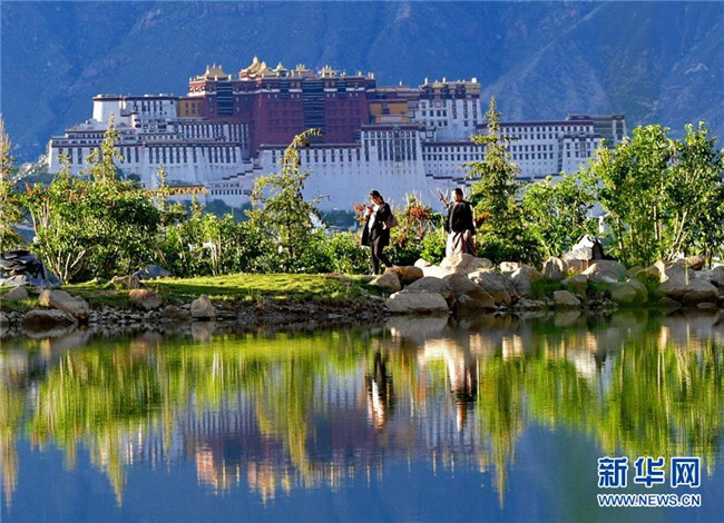 在南山公園湖畔拍攝的布達(dá)拉宮風(fēng)光(7月30日攝)。新華社記者 張汝鋒 攝