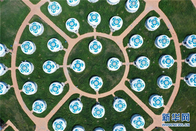 8月5日無人機拍攝的的河北省張北縣中都草原度假村的蒙古包。新華社記者 邢廣利 攝