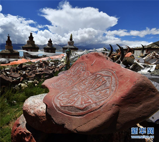 當(dāng)惹雍錯旁的象雄佛塔及經(jīng)石(8月5日攝)。西藏那曲市尼瑪縣位于西藏西北部,位于羌塘國家級自然保護(hù)區(qū)內(nèi),是古老象雄文明的發(fā)祥地之一。這里空氣潔凈,野生動物繁多,深受游客喜愛。新華社記者覺果攝