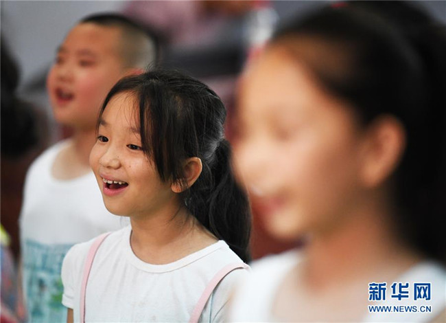 8月5日,小朋友們?cè)谝魳?lè)培訓(xùn)班上。新華社記者 王全超 攝