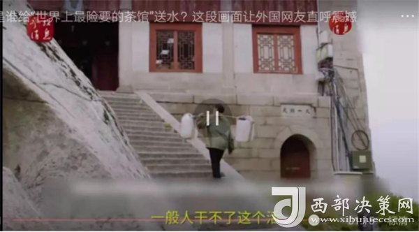 視頻介紹,煮茶所需的水都是挑山工肩挑背扛運上來的。