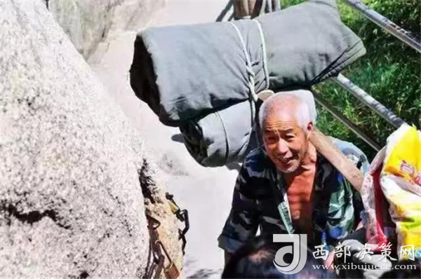 可是,有一群人,每天背著幾十斤重的貨物在華山上下,如履平地,數(shù)十年如一日,這就是華山上的別樣風景---挑山工。一副扁擔、一根長繩,或者一個背簍、一根登山用的手杖就是華山挑山工掙錢養(yǎng)家的家伙什。