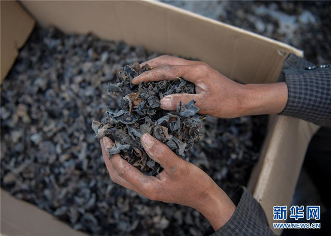 8月10日拍攝的四川壤塘縣下大石溝村種植出的青杠木耳。新華社記者 張超群 攝