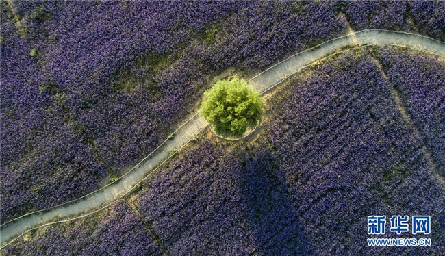 夏末秋初,在寧夏銀川市艾伊薰衣草生態(tài)基地,一片絢麗的花海綻放飄香。該基地位于毛烏素沙漠邊緣,通過改良荒漠土地,并利用滴灌技術(shù)種植薰衣草、馬鞭草、金光菊等花卉以及樟子松、新疆楊等20余種樹木,將昔日的荒漠變?yōu)榛ê>G洲,吸引了大批游客前來觀賞游玩。 新華社記者 馮開華 攝