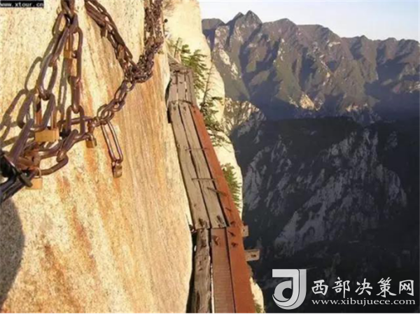 在從南峰到東峰的山路上還有兩處景點:一是"避詔崖",著名道士陳摶,為躲避皇帝征召曾避居此處的山洞中;另一處是絕壁千丈而不見底的長空棧道,棧道依懸崖開鑿,游人需手扶鐵索木欄而過,是華山上又一險處。