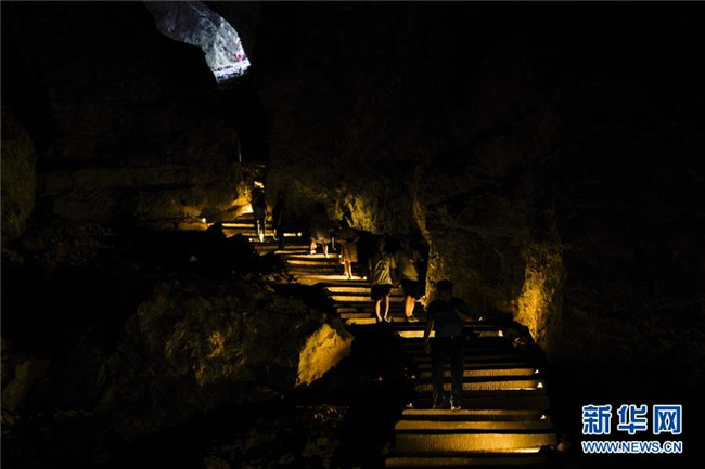 游客在重慶金佛山風(fēng)景區(qū)內(nèi)的靈觀洞景點(diǎn)游覽體驗(yàn)(8月20日攝)。重慶市南川區(qū)的金佛山風(fēng)景區(qū)屬典型的喀斯特地貌,風(fēng)景秀美,吸引了不少游客。新華社記者劉潺攝