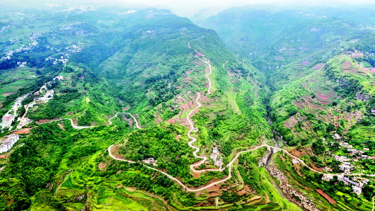 航拍大方縣對江鎮(zhèn)營興村通組公路。 周訓(xùn)貴 攝