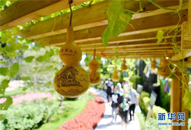8月25日,游客在北京世園會甘肅園內游覽。新華社記者張晨霖攝