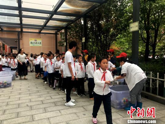 學(xué)校為學(xué)生準(zhǔn)備了營(yíng)養(yǎng)餐,學(xué)生排隊(duì)領(lǐng)?!垙?qiáng) 攝