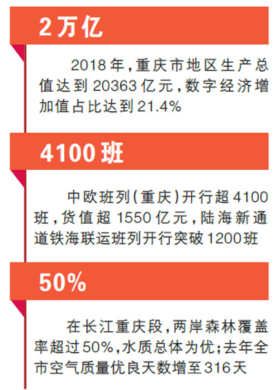 “新中國(guó)成立70年來(lái),重慶人民走過(guò)了一段波瀾壯闊的光輝歷程,巴渝大地發(fā)生了翻天覆地的變化。”唐良智說(shuō),1997年,重慶成為直轄市后,在黨中央堅(jiān)強(qiáng)領(lǐng)導(dǎo)下,圓滿完成三峽百萬(wàn)移民搬遷安置任務(wù),為決勝全面建成小康社會(huì)打下了堅(jiān)實(shí)的基礎(chǔ)。2018年,全市地區(qū)生產(chǎn)總值達(dá)到20363億元,是1949年的1466倍;人均地區(qū)生產(chǎn)總值達(dá)到9964美元,是1949年的758倍。