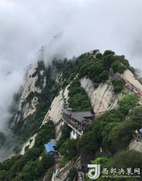 在這里遠(yuǎn)望華山,風(fēng)云變幻,五峰巍峨。