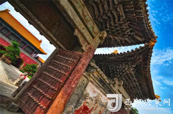 從漢武帝創(chuàng)建至今,西岳廟已經(jīng)歷了兩千余年的風(fēng)風(fēng)雨雨、人間滄桑,在浩繁的史籍中,留著它深沉的足跡。而在它的西側(cè),岳廟步行街東段還有一處關(guān)帝廟,雄偉壯觀、古色古香。它位于岳廟步行街東段,西鄰岳西村,東臨西岳廟,始建于明萬(wàn)歷年間,后又幾經(jīng)天災(zāi)損毀,清朝康熙、乾隆、道光年間經(jīng)民眾多次籌資修葺,至民國(guó)時(shí)形成規(guī)模,占地約50余畝。廟宇坐北朝南,由山門、廂房、東西配殿、正殿、后殿幾部分組成。