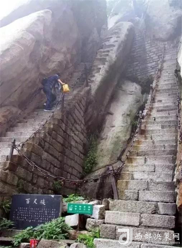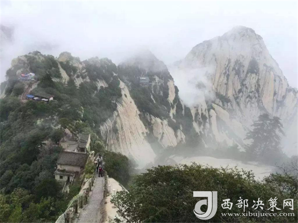 眾所周知,華山在五岳之中以“險峻”著稱。素有“奇險天下第一山”之譽,華山的主體是由一塊完整碩大的花崗巖體構成的,挺拔地屹立在渭河平原。東、南、西三峰拔地而起,如利刃削就。由于華山太險,所以唐代以前很少有人登臨,歷代君王祭祀西岳,也只是在山下西岳廟中舉行大典。據(jù)記載,直到魏晉南北朝時期,還沒有通向華山峰頂?shù)牡缆?。唐代才逐漸在北坡沿溪谷而上開鑿了一條險道,也從此有了“自古華山一條路”的說法。