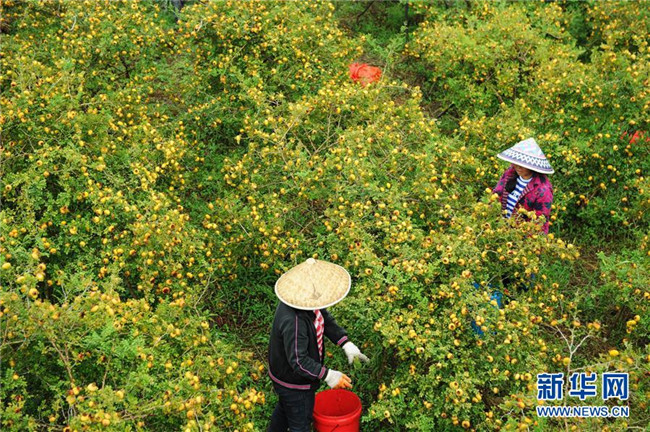 貴州省龍里縣谷腳鎮(zhèn)的農(nóng)民在采摘刺梨鮮果(2018年8月22日攝)。 近年來(lái),貴州省圍繞產(chǎn)業(yè)選擇、培訓(xùn)農(nóng)民、技術(shù)服務(wù)、資金籌措、組織方式、產(chǎn)銷對(duì)接、利益聯(lián)結(jié)、基層黨建等“八要素”,通過(guò)“減、融、服”創(chuàng)新推進(jìn)農(nóng)村產(chǎn)業(yè)結(jié)構(gòu)調(diào)整,既帶動(dòng)了農(nóng)戶增收,也推動(dòng)了特色產(chǎn)業(yè)做大做強(qiáng)。 新華社記者 楊文斌 攝