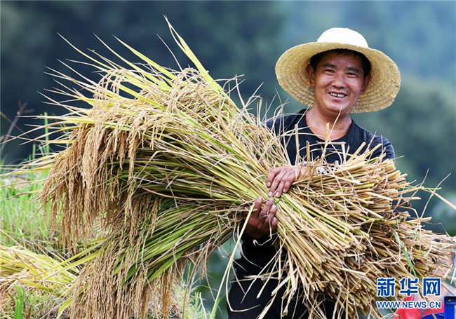9月17日,貴州省榕江縣計(jì)劃鄉(xiāng)計(jì)劃村陽(yáng)開苗寨的村民在收割水稻。 近年來(lái),貴州省圍繞產(chǎn)業(yè)選擇、培訓(xùn)農(nóng)民、技術(shù)服務(wù)、資金籌措、組織方式、產(chǎn)銷對(duì)接、利益聯(lián)結(jié)、基層黨建等“八要素”,通過(guò)“減、融、服”創(chuàng)新推進(jìn)農(nóng)村產(chǎn)業(yè)結(jié)構(gòu)調(diào)整,既帶動(dòng)了農(nóng)戶增收,也推動(dòng)了特色產(chǎn)業(yè)做大做強(qiáng)。 新華社記者 楊文斌 攝