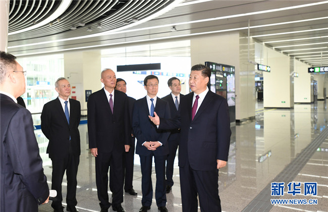抵達(dá)北京大興國(guó)際機(jī)場(chǎng),習(xí)近平首先在綜合交通中心聽取機(jī)場(chǎng)綜合交通體系建設(shè)情況介紹。大興國(guó)際機(jī)場(chǎng)配套建設(shè)了現(xiàn)代化的立體交通體系,不僅在機(jī)場(chǎng)內(nèi)部實(shí)現(xiàn)了公路、軌道交通、高速鐵路、城際鐵路等不同運(yùn)輸方式的立體換乘、無縫銜接,而且在外部配套建設(shè)了五縱兩橫的交通網(wǎng)絡(luò)。目前,大興機(jī)場(chǎng)高速、軌道交通新機(jī)場(chǎng)線、京雄城際鐵路北京段等已同步開通。習(xí)近平對(duì)新機(jī)場(chǎng)配套交通設(shè)施建設(shè)表示肯定。他指出,建設(shè)內(nèi)外部聯(lián)通的綜合交通體系,是提高機(jī)場(chǎng)運(yùn)行效率的關(guān)鍵。要樹立先進(jìn)管理理念,運(yùn)用現(xiàn)代信息技術(shù),提高管理運(yùn)營(yíng)智能化、便利化水平。
