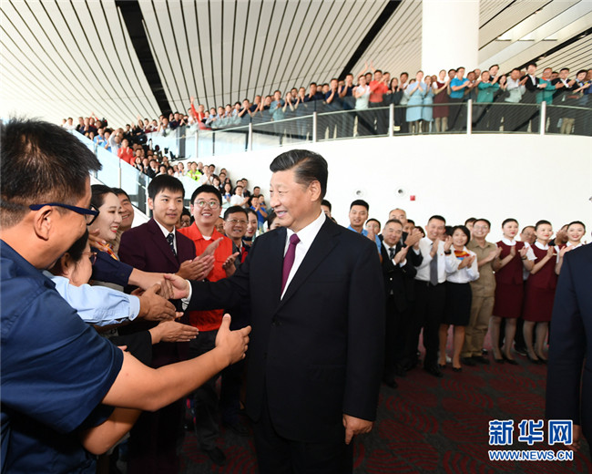 9月25日上午,北京大興國(guó)際機(jī)場(chǎng)投運(yùn)儀式在北京舉行。中共中央總書記、國(guó)家主席、中央軍委主席習(xí)近平出席儀式,宣布機(jī)場(chǎng)正式投運(yùn)并巡覽航站樓。 新華社記者 鞠鵬 攝
