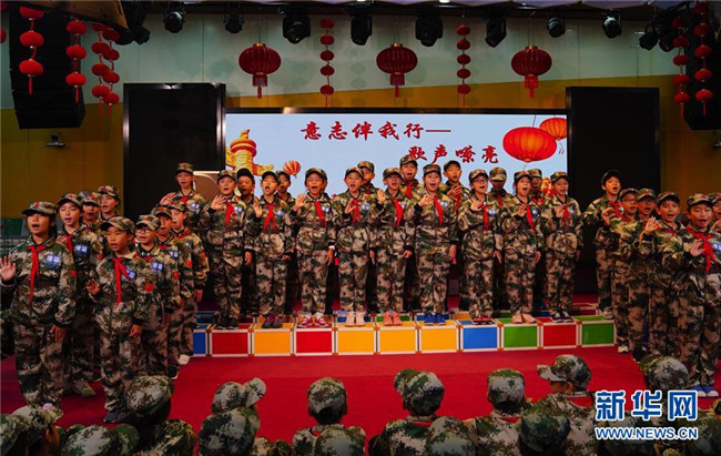 當日,北京市建華實驗學校小學部舉行“意志伴我行——歌聲嘹亮”紅色歌曲大合唱活動。師生們在歌聲中接受了一場愛國主義教育。 新華社記者 吳建路 攝