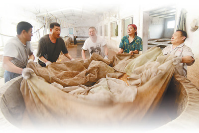 “鳳橋酒廠”里,伙計(jì)們用古法釀酒。林松 攝