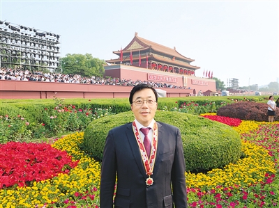 “上午10時,慶祝大會正式開始。鳴禮炮、國旗護(hù)衛(wèi)隊列隊護(hù)送五星紅旗、升國旗……當(dāng)時,參加天安門廣場表演和觀禮的人群異常安靜,現(xiàn)場莊嚴(yán)肅穆。國旗護(hù)衛(wèi)隊員步調(diào)整齊,那步伐顯示著國家的威嚴(yán),腳步聲一直激蕩在我耳邊。”廣州邁普再生醫(yī)學(xué)科技有限公司董事長袁玉宇告訴本報記者,受邀參加慶祝中華人民共和國成立70周年大會,將成為他一生難忘的回憶。
