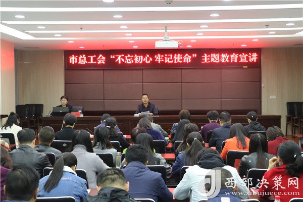 為深入學(xué)習(xí)宣傳貫徹習(xí)近平新時代中國特色社會主義思想,扎實做好“不忘初心、牢記使命”主題教育工作,教育引導(dǎo)黨員干部牢固樹立“四個意識”,不斷堅定“四個自信”,堅決做到“兩個維護(hù)”,確保黨員干部理論學(xué)習(xí)有收獲、思想政治受洗禮,10月12日,西寧市總工會邀請市委黨校黨史黨建教研室主任王銘霞教授進(jìn)行了“不忘初心、牢記使命”主題教育宣講。市總工會和市文聯(lián)、城西區(qū)文匯路小學(xué)70余名黨員干部參加了主題宣講活動。