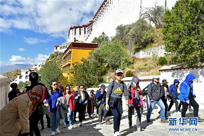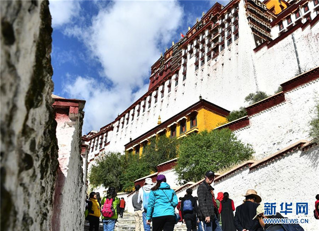 10月15日,游客在布達(dá)拉宮景區(qū)游覽。