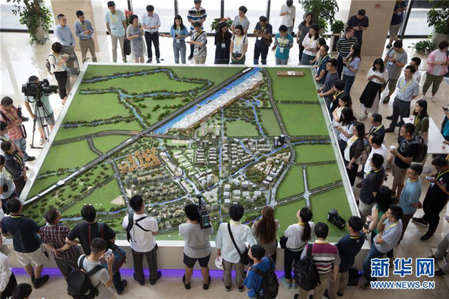 在上海臨港松江科技城沙盤前,參觀者聽取建設(shè)規(guī)劃(8月13日攝)。 G60科創(chuàng)走廊是利用長三角區(qū)位優(yōu)勢、良好的產(chǎn)業(yè)基礎(chǔ)和高??蒲袡C構(gòu)集中等特點打造的區(qū)域協(xié)同創(chuàng)新發(fā)展的重要平臺,將成為長三角更高質(zhì)量一體化發(fā)展的重要引擎。新華社記者 金立旺 攝