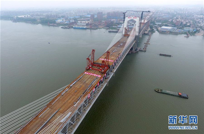 這是合龍后的商合杭鐵路蕪湖長江公鐵大橋(4月26日無人機拍攝)。新華社記者 張端 攝