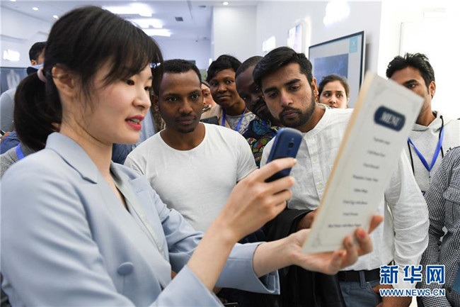 外國留學生在科大訊飛股份有限公司參觀(10月18日攝)。新華社記者 張端 攝