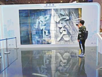 在中國(guó)館,用超大裸眼3D技術(shù)播放的成都寬窄巷子視頻引人關(guān)注。 記者 肖雨楊 攝
