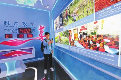 脫貧攻堅(jiān)是幸福中國(guó)的生動(dòng)詮釋。一塊脫貧攻堅(jiān)倒計(jì)時(shí)422天的標(biāo)識(shí)牌引發(fā)圍觀,展示的脫貧攻堅(jiān)8項(xiàng)主要成果中,四川占有兩席。作為教育脫貧的成果,一張照片展現(xiàn)了涼山州昭覺(jué)縣幼教點(diǎn)輔導(dǎo)員帶領(lǐng)幼兒學(xué)習(xí)普通話(huà)的場(chǎng)景;嚴(yán)把貧困退出關(guān),另一張照片則展示了第三方評(píng)估團(tuán)隊(duì)在甘孜州康定市開(kāi)展貧困縣退出抽查的場(chǎng)景。