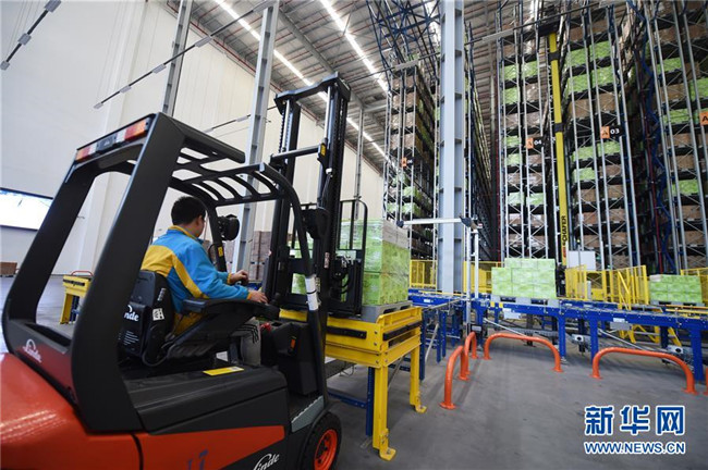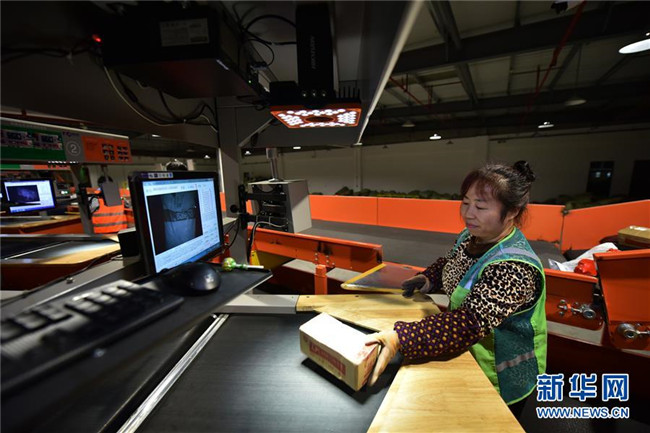工作人員在南京市雨花經(jīng)濟(jì)開(kāi)發(fā)區(qū)一家智慧物流基地內(nèi)忙碌(2016年11月3日攝)。該物流基地建筑面積達(dá)20多萬(wàn)平方米,可存儲(chǔ)商品2000萬(wàn)件,日處理包裹181萬(wàn)件。整個(gè)物流基地實(shí)現(xiàn)全流程自動(dòng)作業(yè),從訂單生成到商品出庫(kù),最快可縮短到30分鐘。新華社發(fā)