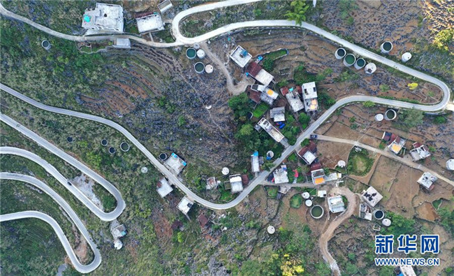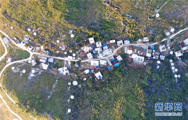 廣西大化瑤族自治縣七百弄鄉(xiāng)弄騰村群眾的家庭水柜分布在房前屋后(11月9日無人機拍攝)。 新華社記者 黃孝邦 攝