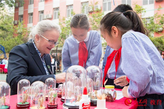 北京市朝陽區(qū)實驗小學今年舉辦“‘一帶一路’手拉手,‘一班一國’看世界”主題實踐活動,多名外國友人體驗中國傳統(tǒng)文化項目。 盧靜攝