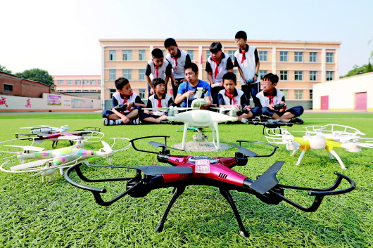 6月26日,河北省內(nèi)丘縣實驗小學(xué)學(xué)生在參加無人機特色課程。近年來,該校推進素質(zhì)教育,讓學(xué)生走出教室,參與到內(nèi)容豐富、形式多樣的特色教育活動中。新華社記者 朱旭東 攝