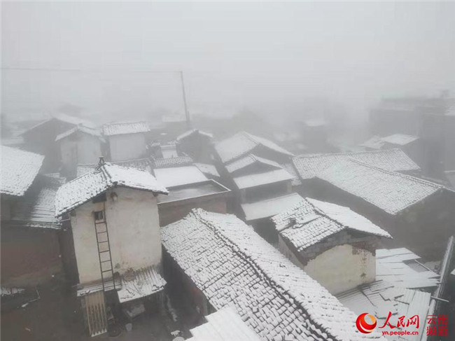 紅河州彌勒市東山鎮(zhèn)一片銀裝素裹。攝影:吳正飛