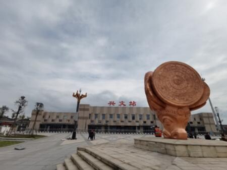 位于四川省宜賓市興文縣古宋鎮(zhèn)同心村,其構思為“奇石涌浪”,通過幾何形體的參差組合,將當地奇特的石海地貌元素融入站房設計,抽象出奇石堆疊翻涌的意向。站房中間高、兩側低,立面的輪廓線富有變化、層次分明,既有層波疊浪的整體氣魄,又有奇石剛勁有力的細部特征。車站候車室面積1000平方米,旅客最大聚集人數400人,候車座位256個。
