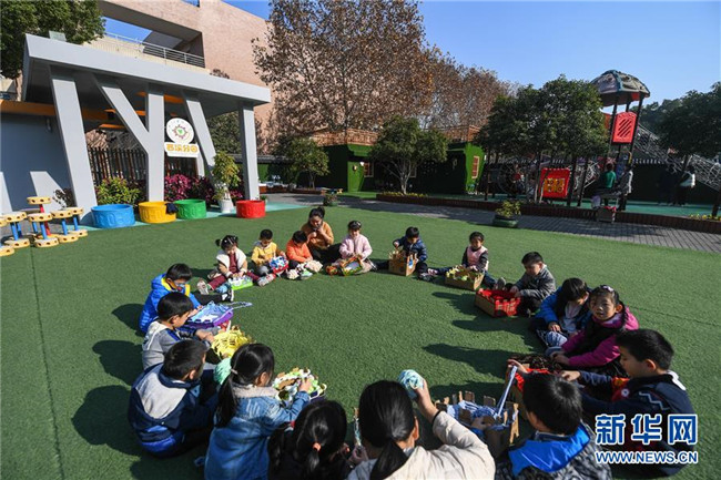 12月11日,小朋友在老師的帶領(lǐng)下繪制愛心卡片,準(zhǔn)備隨圍巾一起寄給西藏的小朋友們。 新華社記者 徐昱 攝