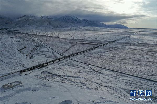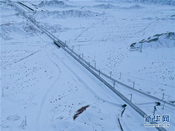 這是12月16日無人機(jī)拍攝的敦煌鐵路大柴旦站附近的一處鐵路橋。12月18日,隨著肅北至馬海區(qū)段通車,敦煌鐵路全線開通運(yùn)營,中國西北地區(qū)形成首條環(huán)形鐵路網(wǎng)。新華社記者張龍攝