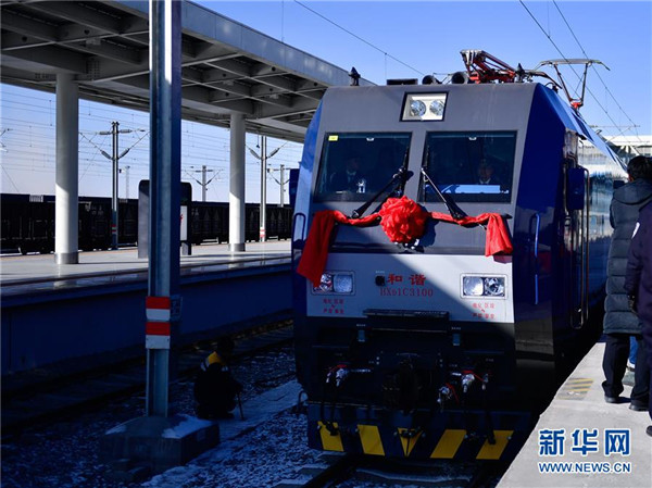 12月18日,在青海格爾木,列車駛出格爾木站。當(dāng)日,隨著肅北至馬海區(qū)段通車,敦煌鐵路全線開通運(yùn)營,中國西北地區(qū)形成首條環(huán)形鐵路網(wǎng)。新華社記者張龍攝