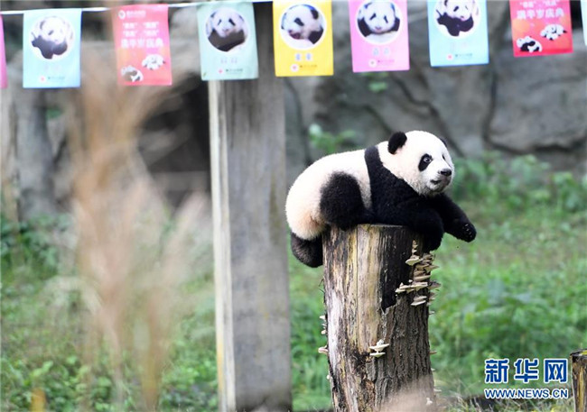12月22日,重慶動物園1只半歲的大熊貓在戶外活動。當(dāng)日,重慶動物園為4只大熊貓寶寶“雙雙”“重重”“喜喜”“慶慶”舉行半歲生日慶?;顒?。4只半歲大熊貓在飼養(yǎng)員的照料下,在熊貓館運(yùn)動場內(nèi)玩耍、嬉戲,與市民游客一同過冬至。新華社記者唐奕攝