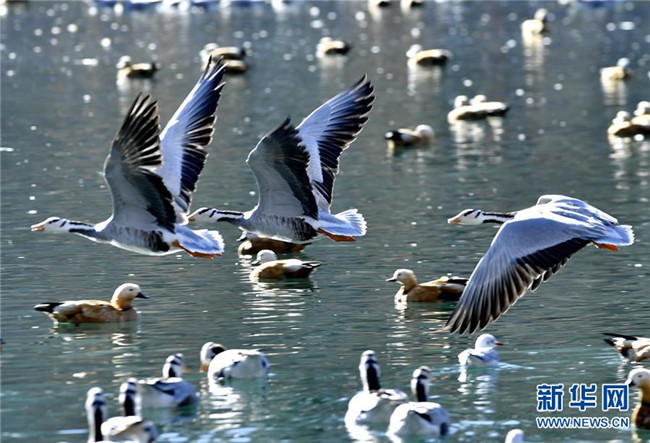冬日,西藏拉薩市布達(dá)拉宮腳下的龍王潭公園成了鳥的“天堂”。數(shù)不盡的斑頭雁、赤麻鴨、紅嘴鷗在這里嬉戲、覓食。