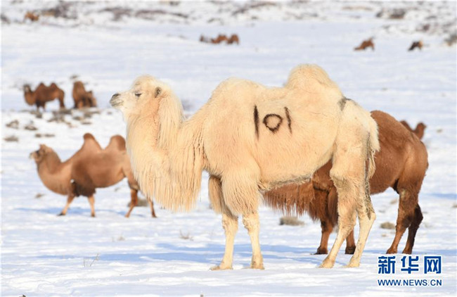 12月30日,牧民在新疆吉木乃縣“萬(wàn)駝園”放駱駝。新華社記者 沙達(dá)提 攝