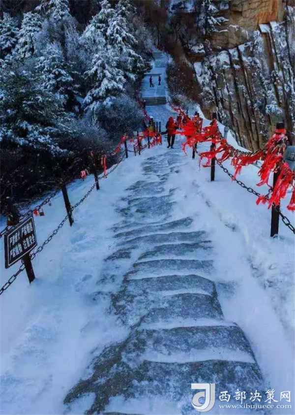 正值冬季,寒風蕭蕭,到處是枯木落葉,而有些地方一年四季都很美,在冬季更是別有風韻。奇險天下第一山之美譽的西岳華山自古稱奇,尤其是冬季的華山,自然景觀則更為奇特,“雪海”、“雪松”、“冰掛”、“冰瀑”、“冰雕”等景觀,為華山的美增添了無窮的魅力,如果說夏季的華山如水彩般鮮艷秀美,那冬日的華山就如水墨般濃墨厚重了。