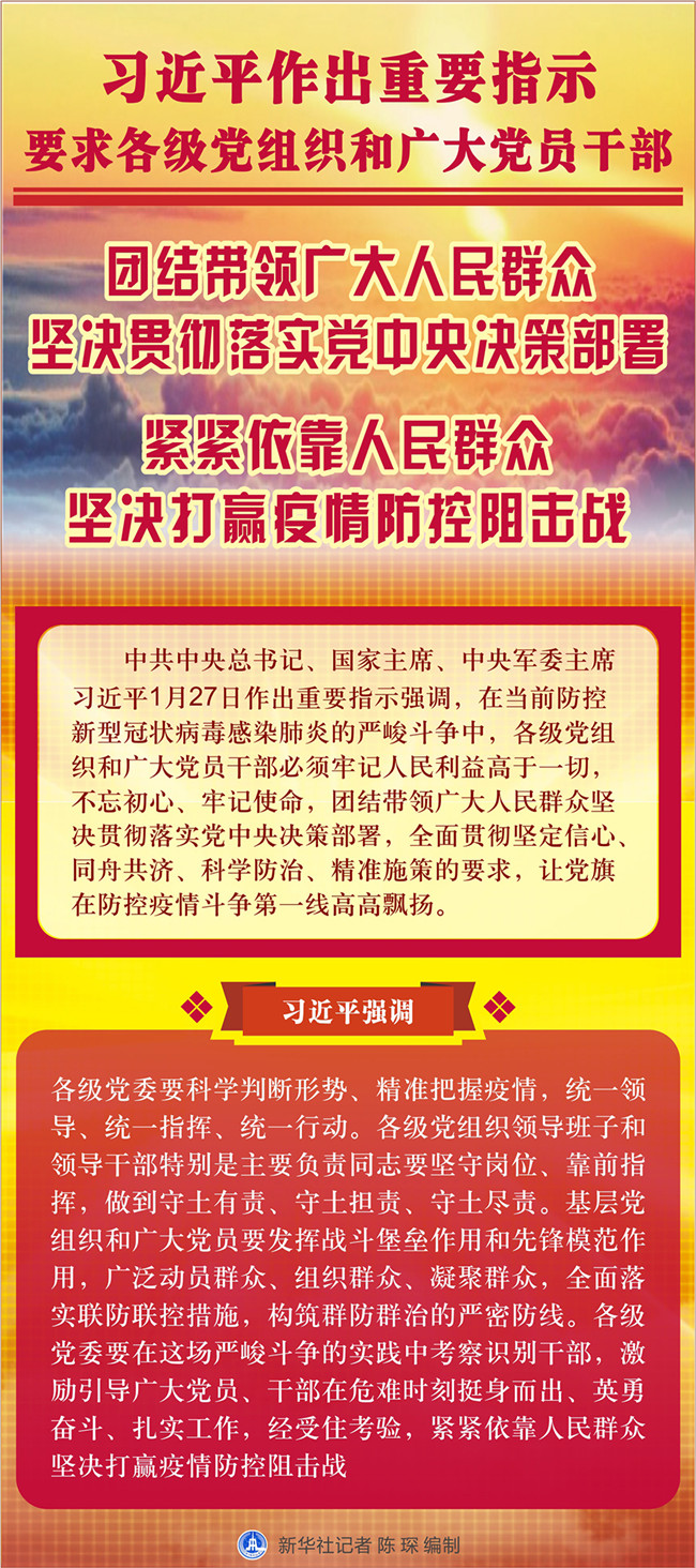 習近平作出重要指示要求各級黨組織和廣大黨員干部 團結(jié)帶領廣大人民群眾堅決貫徹落實黨中央決策部署 緊緊依靠人民群眾堅決打贏疫情防控阻擊戰(zhàn)