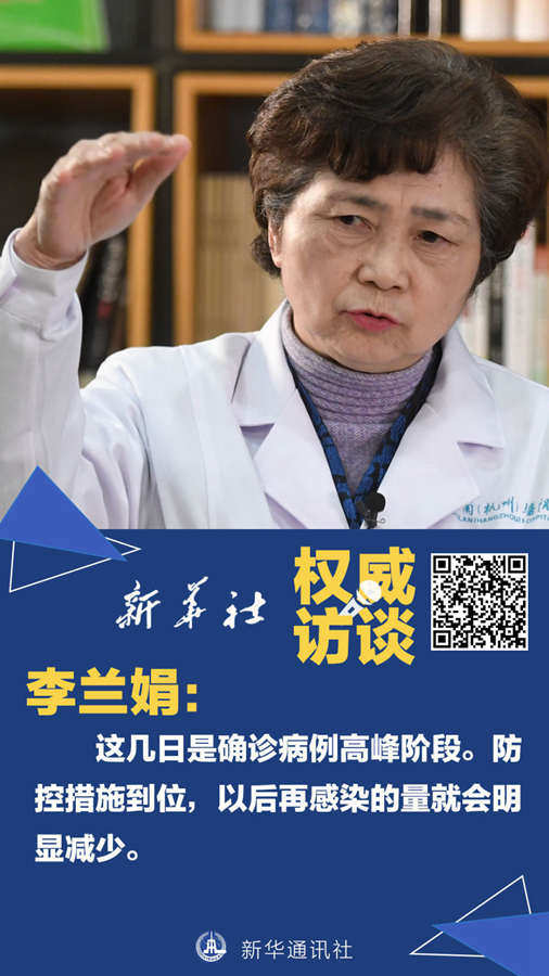 李蘭娟:之前為潛伏期的病人開始發(fā)病。早期武漢流到全國(guó)各地的病人以及留在武漢的病人都到了發(fā)病期,這是高峰來臨的一個(gè)階段,一點(diǎn)也不奇怪。現(xiàn)在,發(fā)病的人我們隔離了,與他們有密切接觸的人員也調(diào)查出來、隔離起來,以后再感染的數(shù)量會(huì)明顯減少。武漢“封城”是非常英明的決策。正好趕上春節(jié)人口大流動(dòng),只有嚴(yán)格地把武漢控制起來,其他的地方才會(huì)減少發(fā)病率。