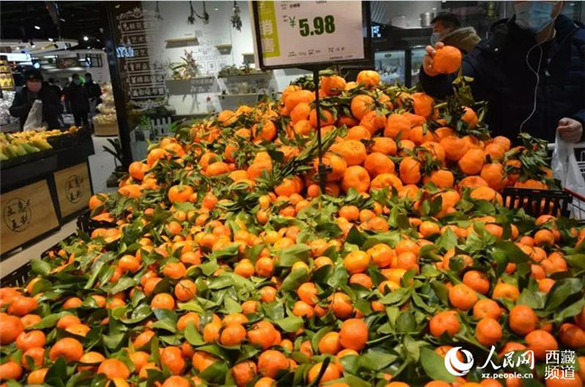 圖為日喀則超市內(nèi)市民選購蔬菜