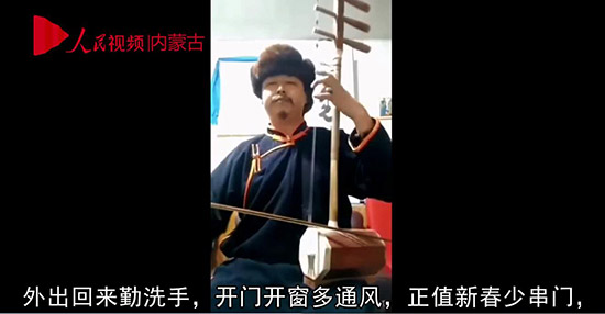 內(nèi)蒙古牧民用“好來(lái)寶”宣傳疫情防控知識(shí)。視頻截圖
