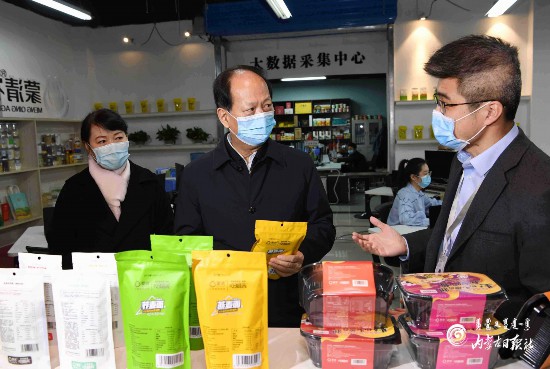 中小微企業(yè)和餐飲業(yè)受疫情影響較大,石泰峰高度關(guān)注。在金橋電子商務(wù)產(chǎn)業(yè)園,他通過觀看大數(shù)據(jù)監(jiān)測平臺、走訪商戶等方式,深入了解入駐企業(yè)經(jīng)營情況。在蒙清農(nóng)業(yè)電子商務(wù)運營中心,企業(yè)負責(zé)人展示了他們研發(fā)的適合“宅”在家食用的“蕎面自嗨鍋”,該產(chǎn)品在疫情期間投入市場后十分暢銷。石泰峰指出,疫情給很多行業(yè)帶來了沖擊和影響,但危中也有機。要主動應(yīng)變求變,加大產(chǎn)品創(chuàng)新力度,挖掘新的消費熱點,培育新的消費模式,堅持線上線下雙輪發(fā)力,加快釋放新興消費潛力。在西貝莜面村,石泰峰走進餐廳,詳細了解防疫防控和堂食營業(yè)、訂單外賣等情況。餐飲企業(yè)對顧客用餐實行掃碼、測溫、登記,顧客就餐保持規(guī)定距離、實行分餐,石泰峰要求把這些嚴格的防控措施切實落實到位。他強調(diào),有關(guān)部門要加強服務(wù)指導(dǎo),推動符合條件的餐飲企業(yè)和店鋪積極有序復(fù)工,確保各個環(huán)節(jié)都安全可控。他還隨機走進多家臨街餐館,檢查防疫措施,詢問員工返崗和營業(yè)情況。